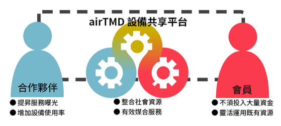 airTMD(以下簡稱本平台)是一個以測試、加工製造設計為主軸的資源共享─生產力4.0平台,以英文單字「
